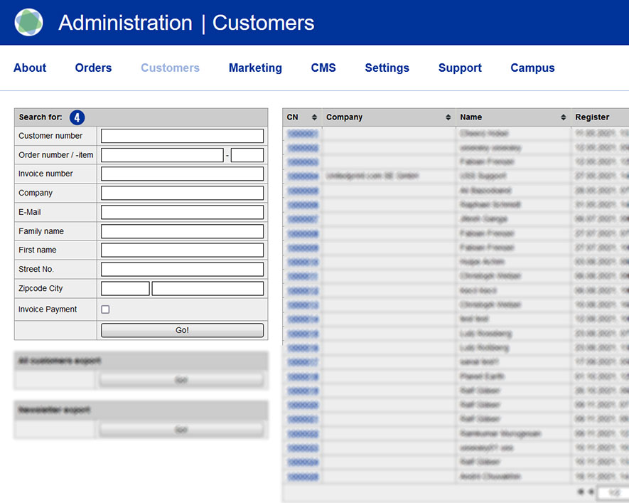 Wird über die Kundennummer gesucht, beinhaltet das Suchergebnis sowohl laufende als auch abgeschlossene Aufträge.