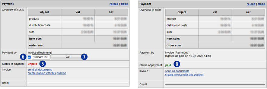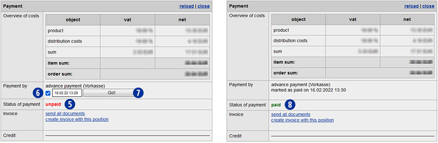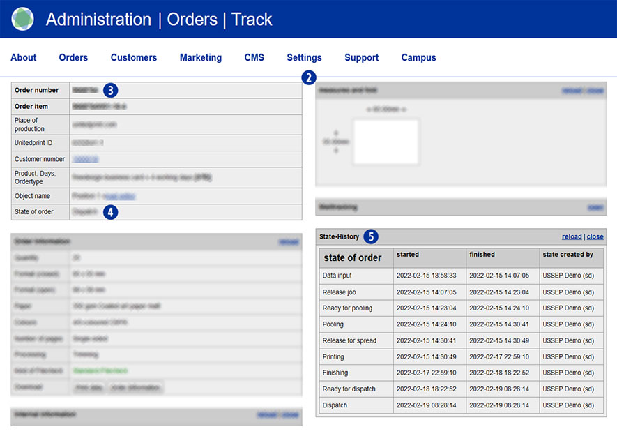 Im Modul „Order number“ [3] ist im Feld „State of Order“ [4] der aktuelle Bestellstatus einsehbar. Die Aktualisierung der Status erfolgt automatisch im Hintergrund.