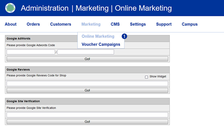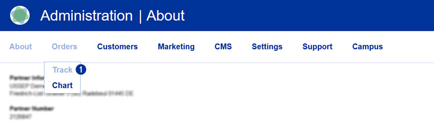 Wechseln Sie in das Partnershop Backend in das Menü Orders / Track. [1]