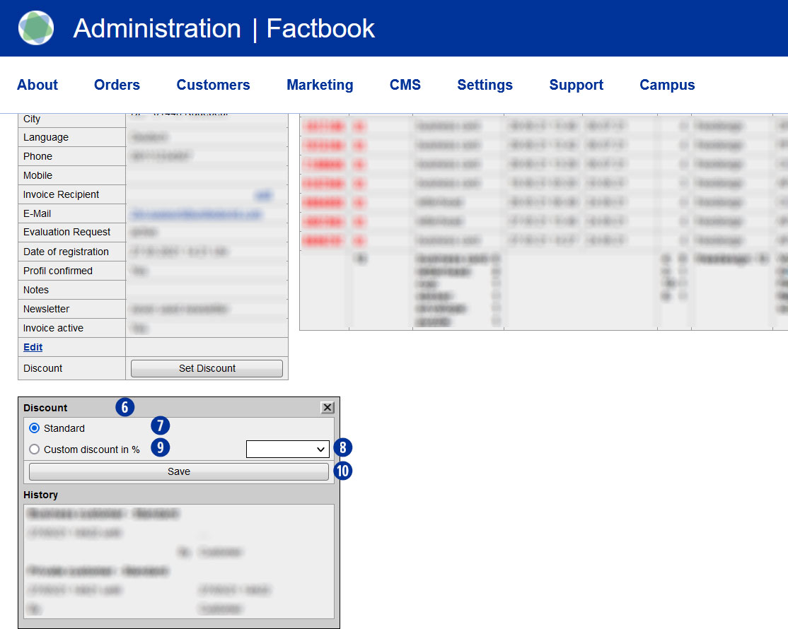 Im Modul „State-History“ [5] werden chronologisch die durchlaufenen Bestellstatus zu einem Auftrag aufgelistet.