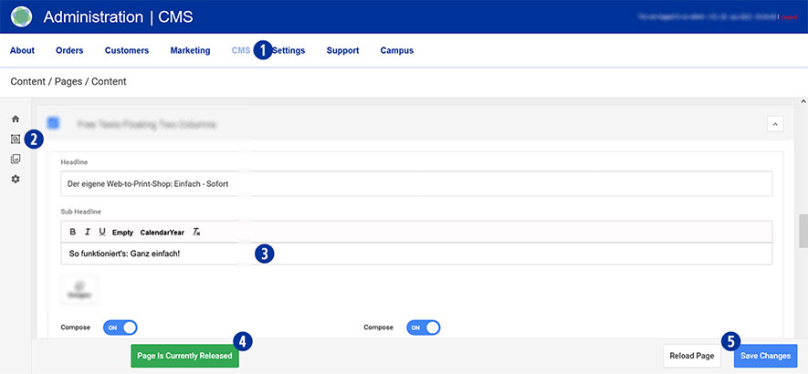Wechseln Sie dazu in ihr Partnershop Backend – CMS / Content / Pages / Start. [1][2]